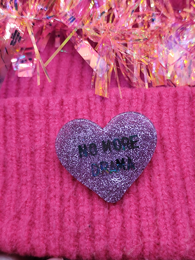Broche cœur à paillettes - message : NO MORE DRAMA