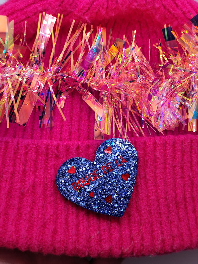 Broche cœur à paillettes XL - message : BOUGE DE LA