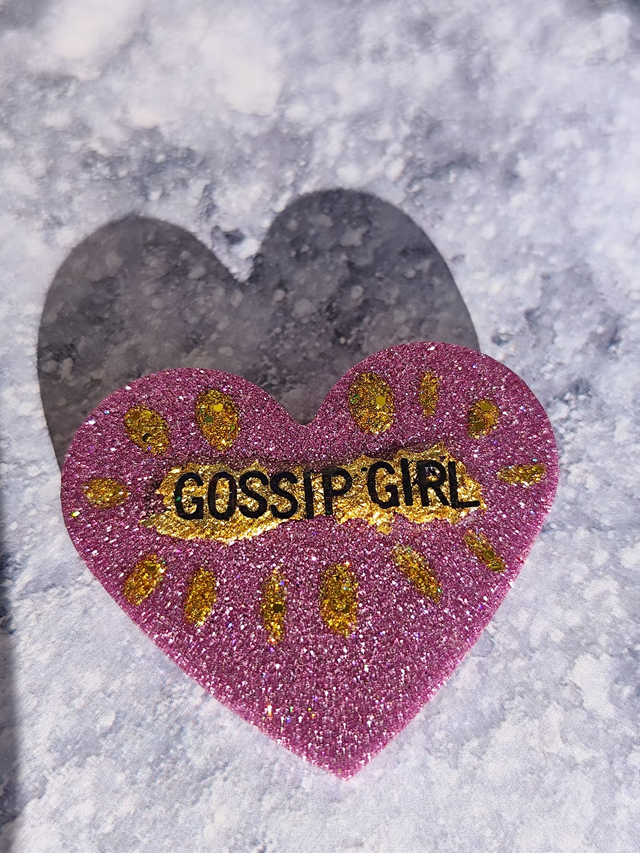 Broche cœur à paillettes XL - message : GOSSIP GIRL