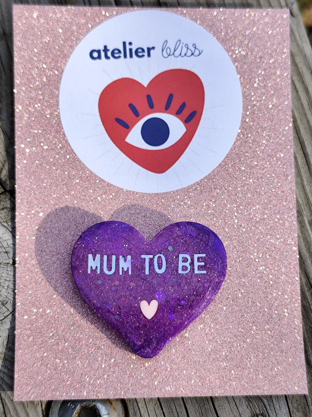 Broche Mum to be – broche en résine pailletée, pièce unique